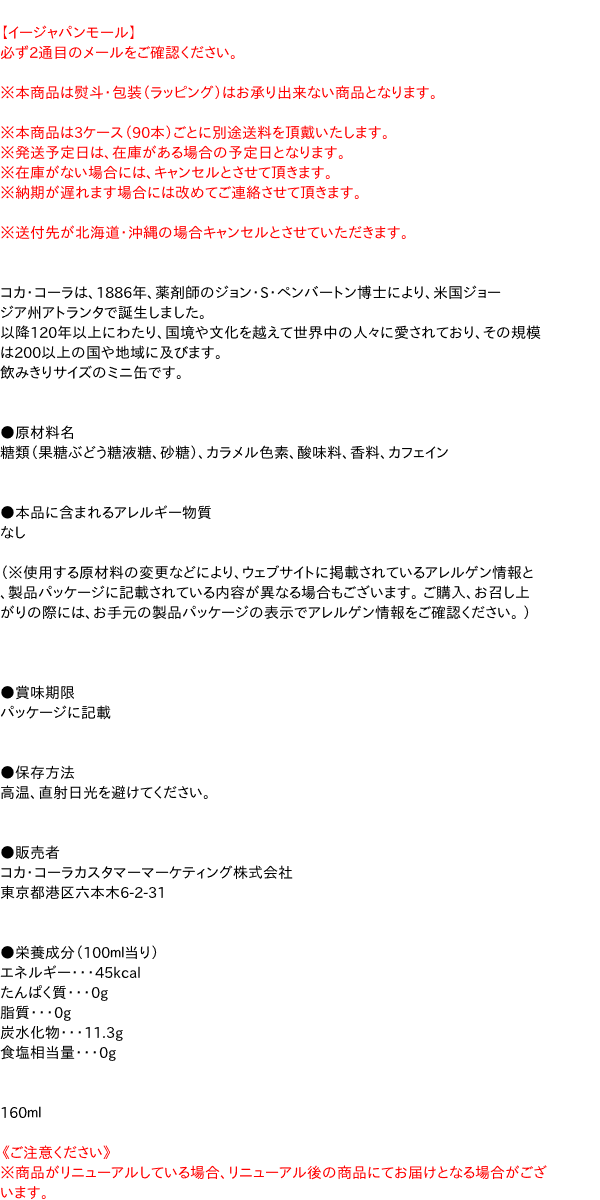 コカコーラ 160m ミニ缶 ×30個 はコチラ >>【イージャパンショッピングモール】内のみのお買い物は、送料一律でどれだけ買っても同梱する事が出来ます。