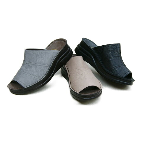 日本製 本革 サンダル レディース 厚底 フラット サボサンダル フラットサンダル レザー コンフォートサンダル 幅広 4E スリッパ 黒 ブラック グレー ベージュ