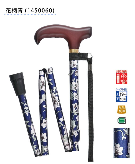 フジホーム WB3905 替えゴム付 ベーシック 折畳 S 花柄赤 ステッキ 花柄青 おしゃれ(代引不可)【送料無料】
