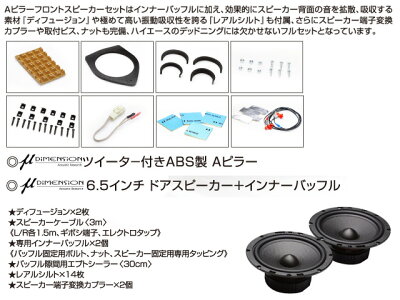 ・μデイメンション ツイーター付きABS製ピラー・μデイメンション 6.5インチ ドアスピーカー+インナーバッフル・ディフュージョン×2枚・スピーカーケーブル 3m (L/R各1.5m、ギボシ端子、エレクトロタップ)・専用インナーバッフル×2個 (バッフル固定用ボルト、ナット、スピーカー固定用専用タッピング)・バッフル隙間用エプトシーラー 30cm・レアルシルト×14枚・スピーカー端子交換カプラー×2個※ご注意※DX車のリアクーラーなし車にはお取り付け出来ません。