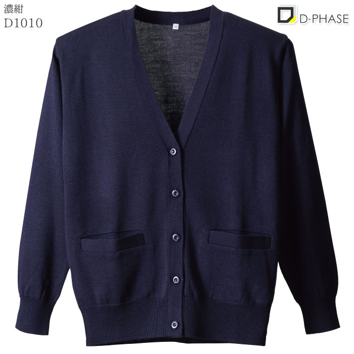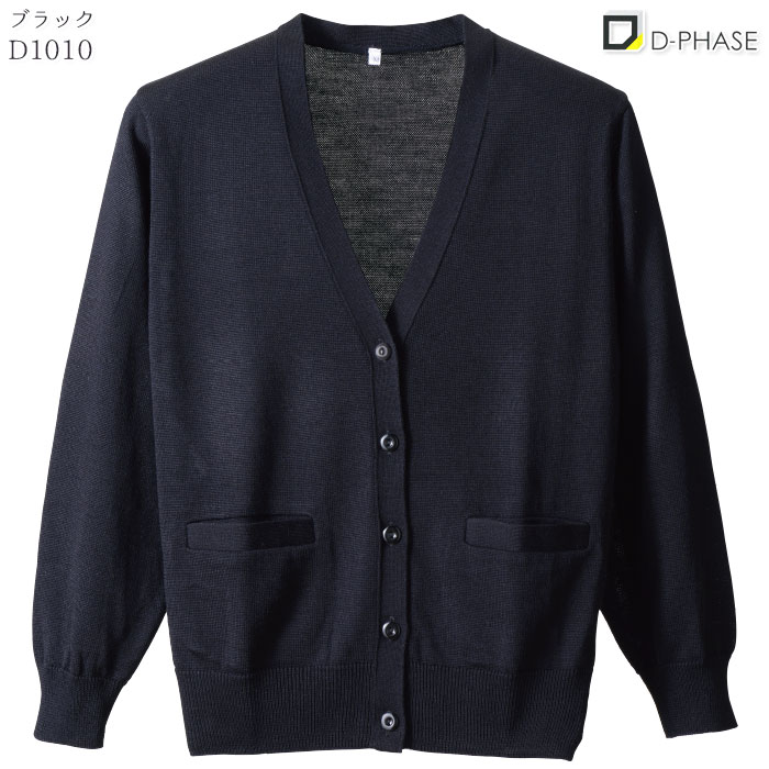 カーディガン D1010 レディース M〜LL ブラック 黒 濃紺 グレー 長袖 Vネック ポケット付 女性/抗ピル加工(毛玉防止) 静電気防止 家庭洗濯可能/D-PHASE ディーフェイズ[看護師 ナース 医療 歯科 クリニック 介護 病院 事務/メディカル ケア オフィス 制服]
